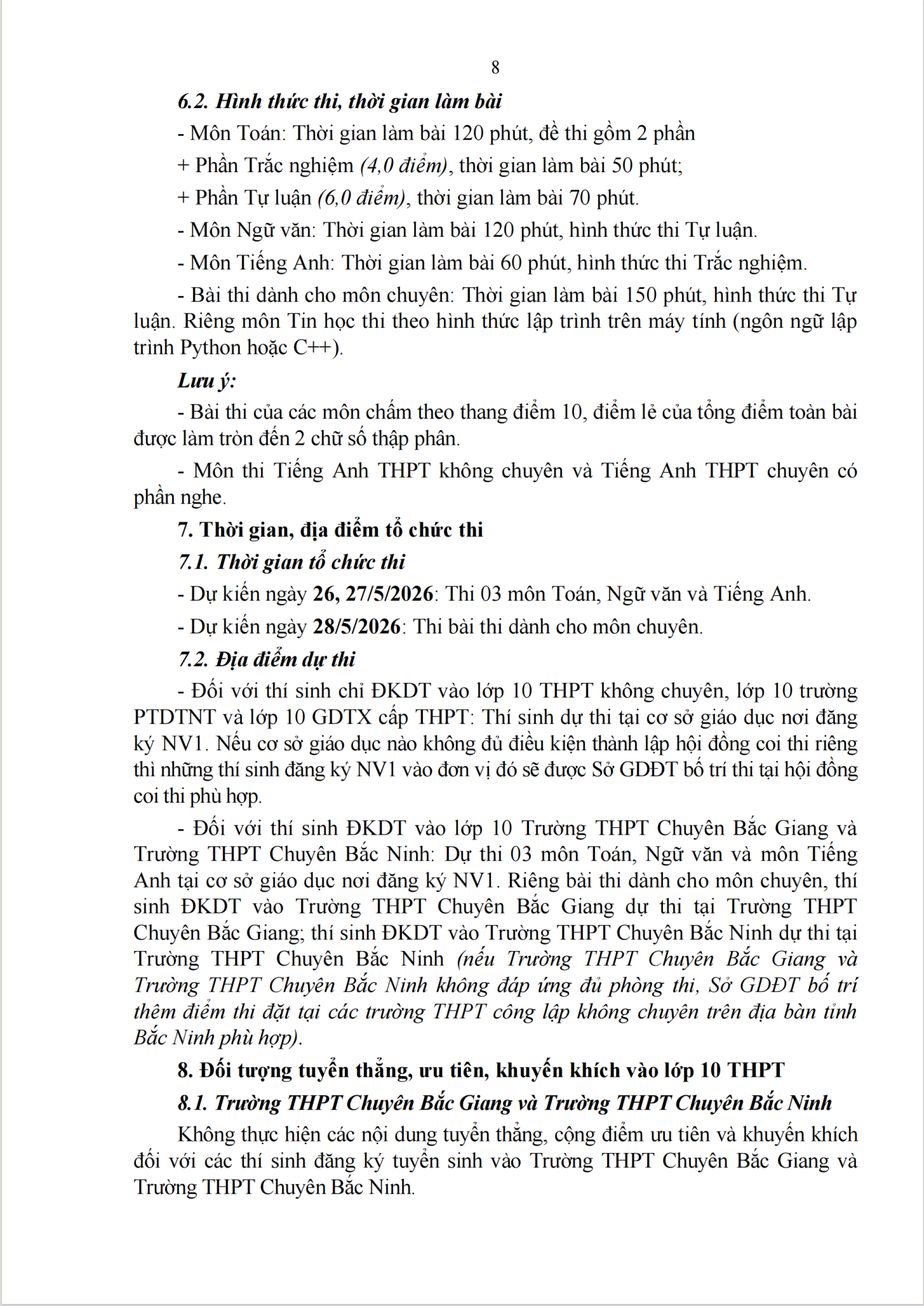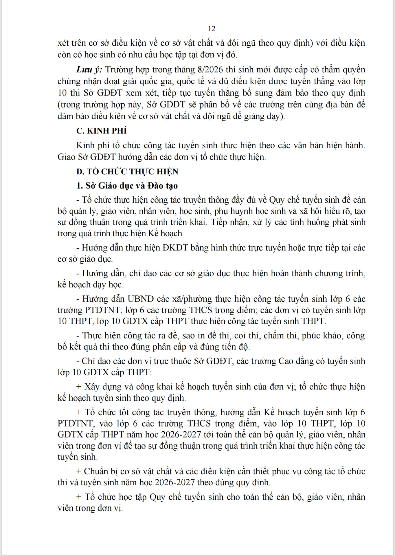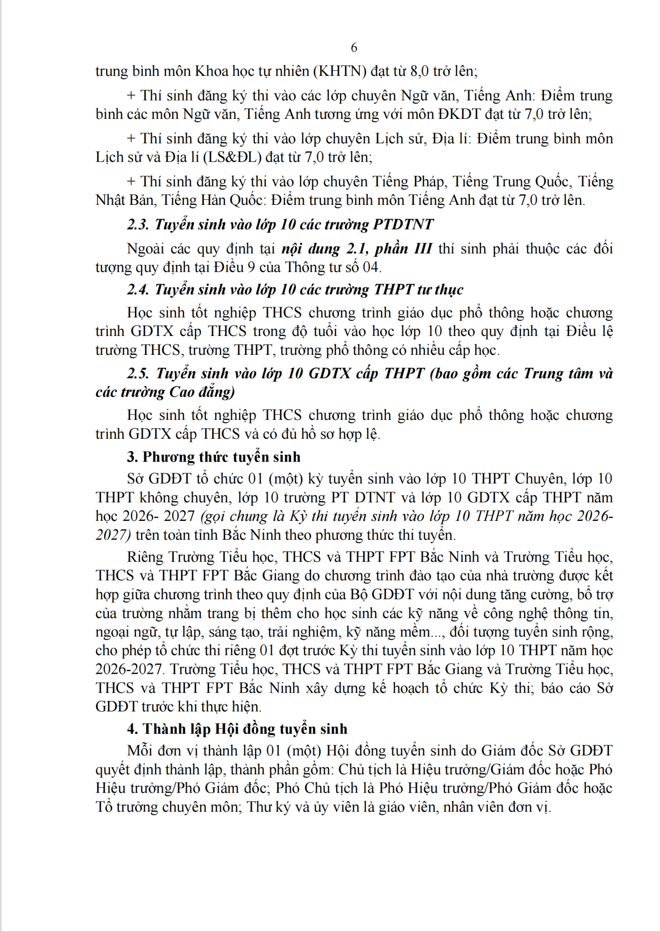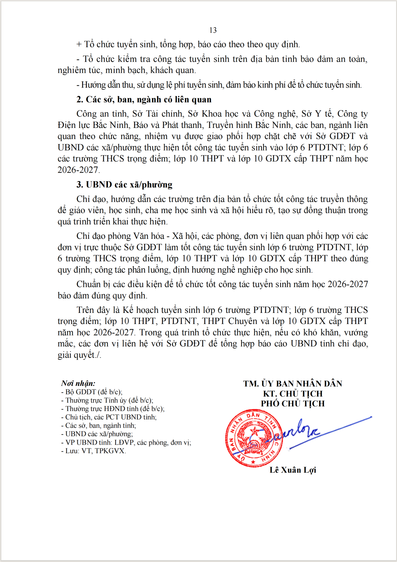 KẾ HOẠCH TUYỂN SINH LỚP 6 VÀ LỚP 10 CÁC TRƯỜNG THCS & THPT TRÊN ĐỊA BÀN TỈNH BẮC NINH, NĂM HỌC 2026-2027Tác giảVũ Tuấn15:18 - 24/02/2026 File chi tiết: Tải xuống ke-hoach-so-47-cua-ubnd-tinh.pdfChia sẻ: