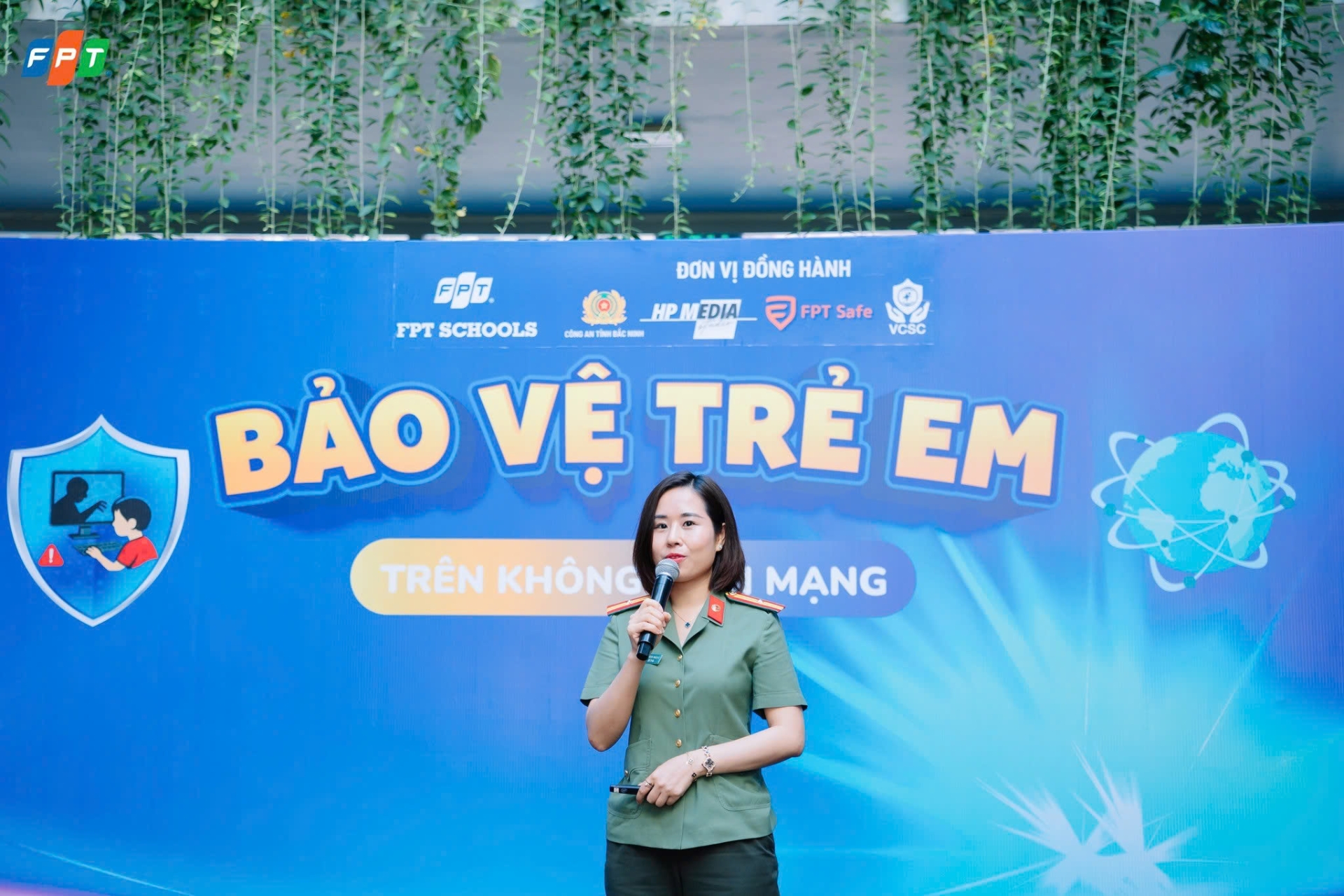 Đặc biệt, chương trình vinh dự chào đón Thiếu tá Đàm Thị Bích Ngọc – Phòng An ninh mạng & phòng, chống tội phạm sử dụng công nghệ cao, Công an tỉnh Bắc Ninh. Với kinh nghiệm thực tiễn, Thiếu tá đã chia sẻ những thông tin xác thực về thực trạng, nguy cơ và các rủi ro mà trẻ em có thể gặp phải khi tham gia Internet.