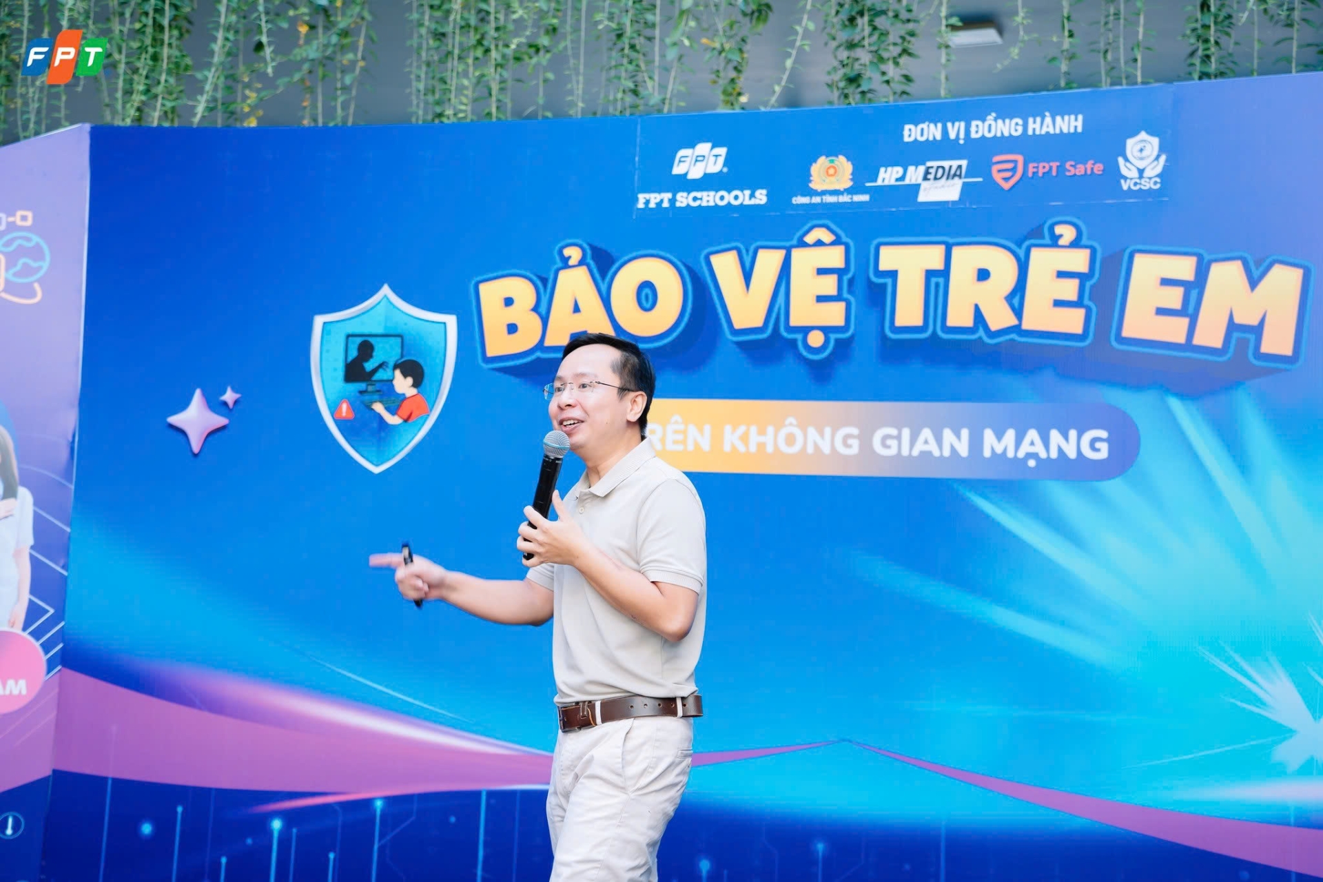 Buổi workshop có sự hiện diện của thầy Đinh Đức Hiền – Giám đốc điều hành FPT School Bắc Giang cùng các thầy cô trong Ban Giám hiệu. Sự quan tâm, đồng hành của lãnh đạo nhà trường thể hiện cam kết mạnh mẽ trong việc bảo vệ, đồng hành cùng học sinh trên hành trình trưởng thành an toàn, lành mạnh trong kỷ nguyên số.