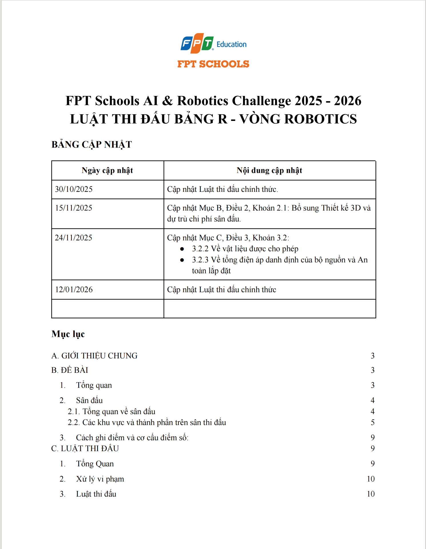 Chào mừng các đội thi đến với chặng đua kịch tính và được mong chờ nhất tại FPT Schools AI & Robotics Challenge 2025 - 2026! Sau khi vượt qua thử thách lập trình ứng dụng đầy cam go, các "chiến binh" Bảng R sẽ chính thức bước vào đấu trường thực chiến, nơi những dòng code được chuyển hóa thành những bước chạy mạnh mẽ của Robot trên sa bàn.
