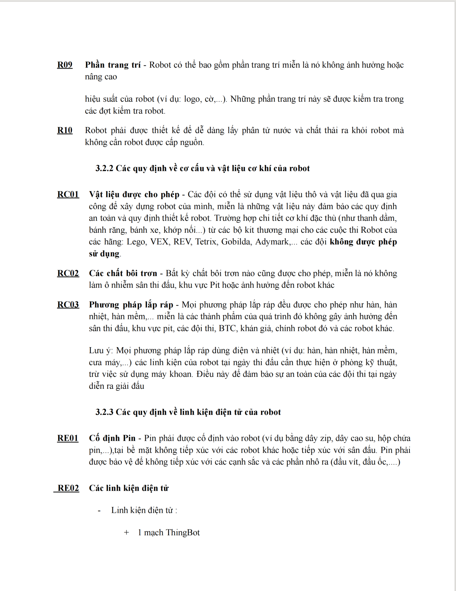 Dưới đây là chi tiết luật thi đấu Bảng R - Vòng ROBOTICS: