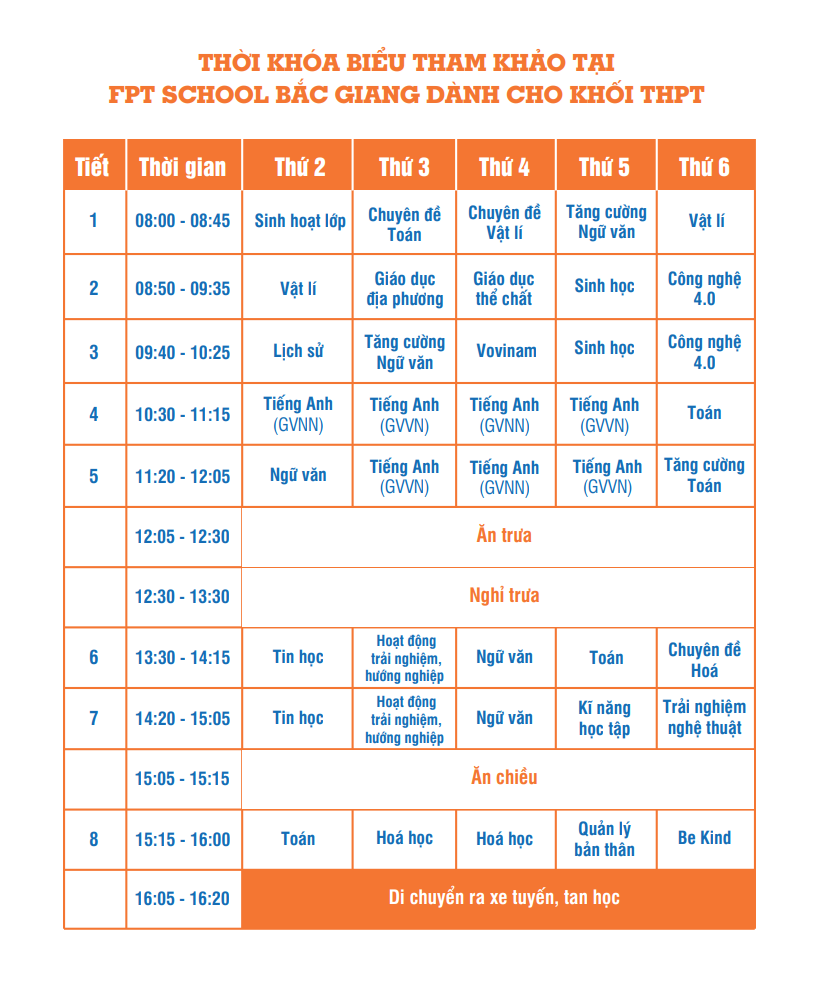 THỜI GIAN BIỂU KHỐI THPT