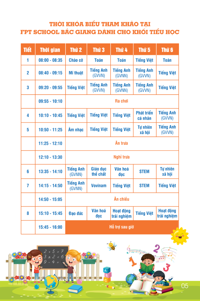 Dưới đây là thông tin tham khảo dự kiến dành cho phụ huynh và học sinh, Nhà trường sẽ cung cấp đầy đủ thông tin khi chính thức đi vào hoạt động trong thời gian tới.
