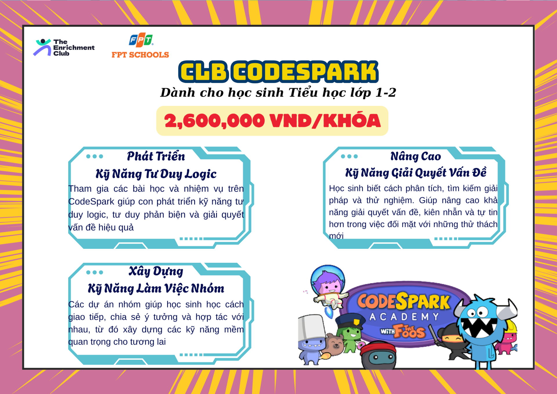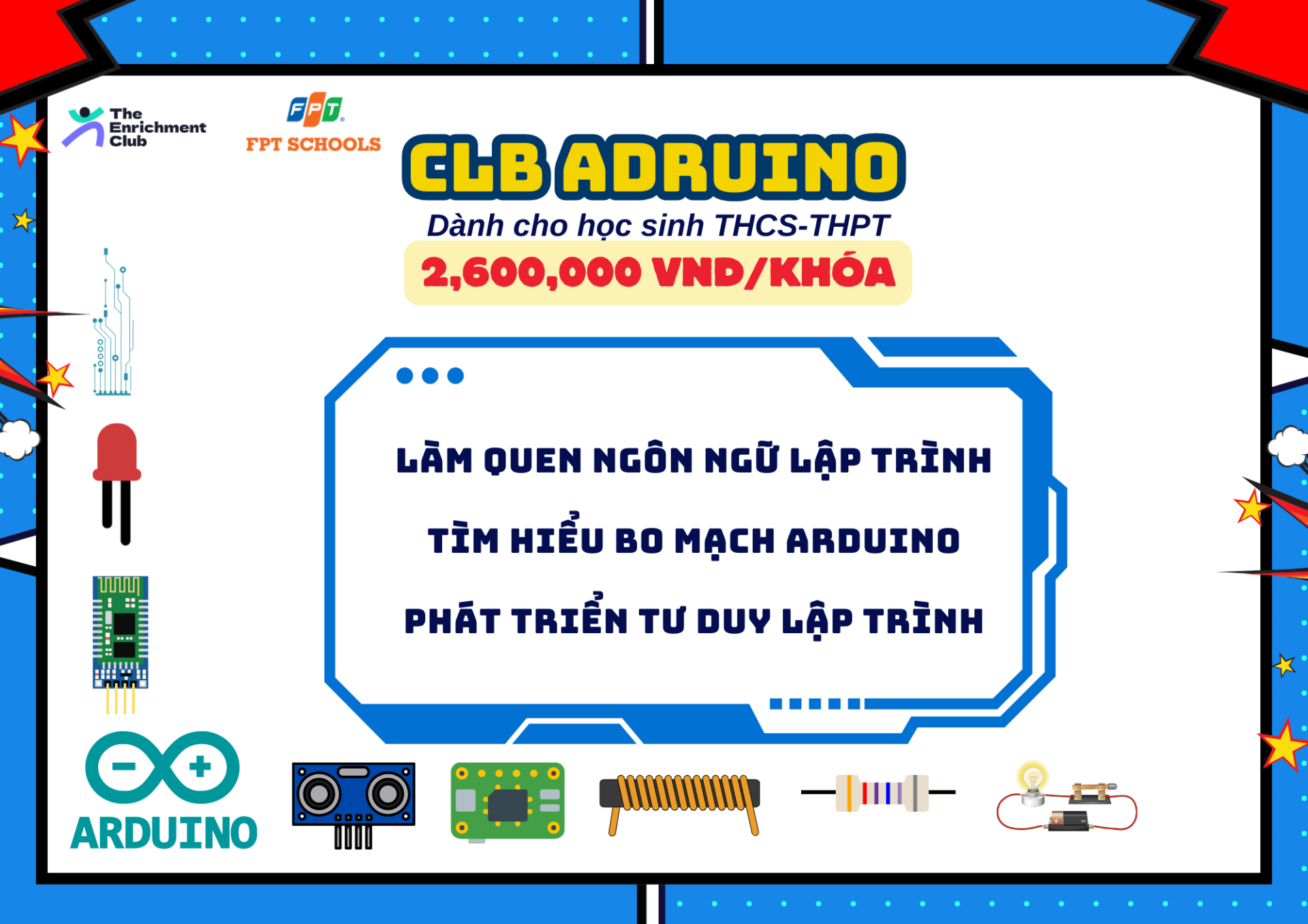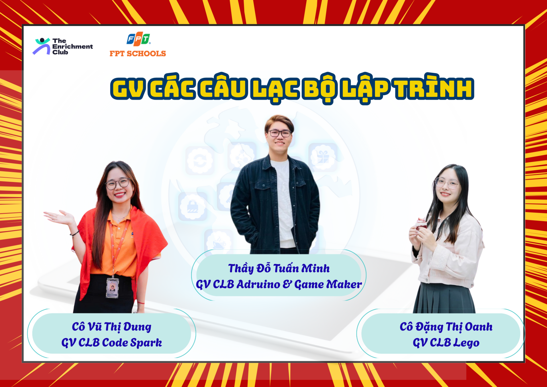 Lĩnh vực Lập trình: CLB Lập trình Arduino, CLB Lập trình Lego, CLB Code Spark, CLB Game Maker.