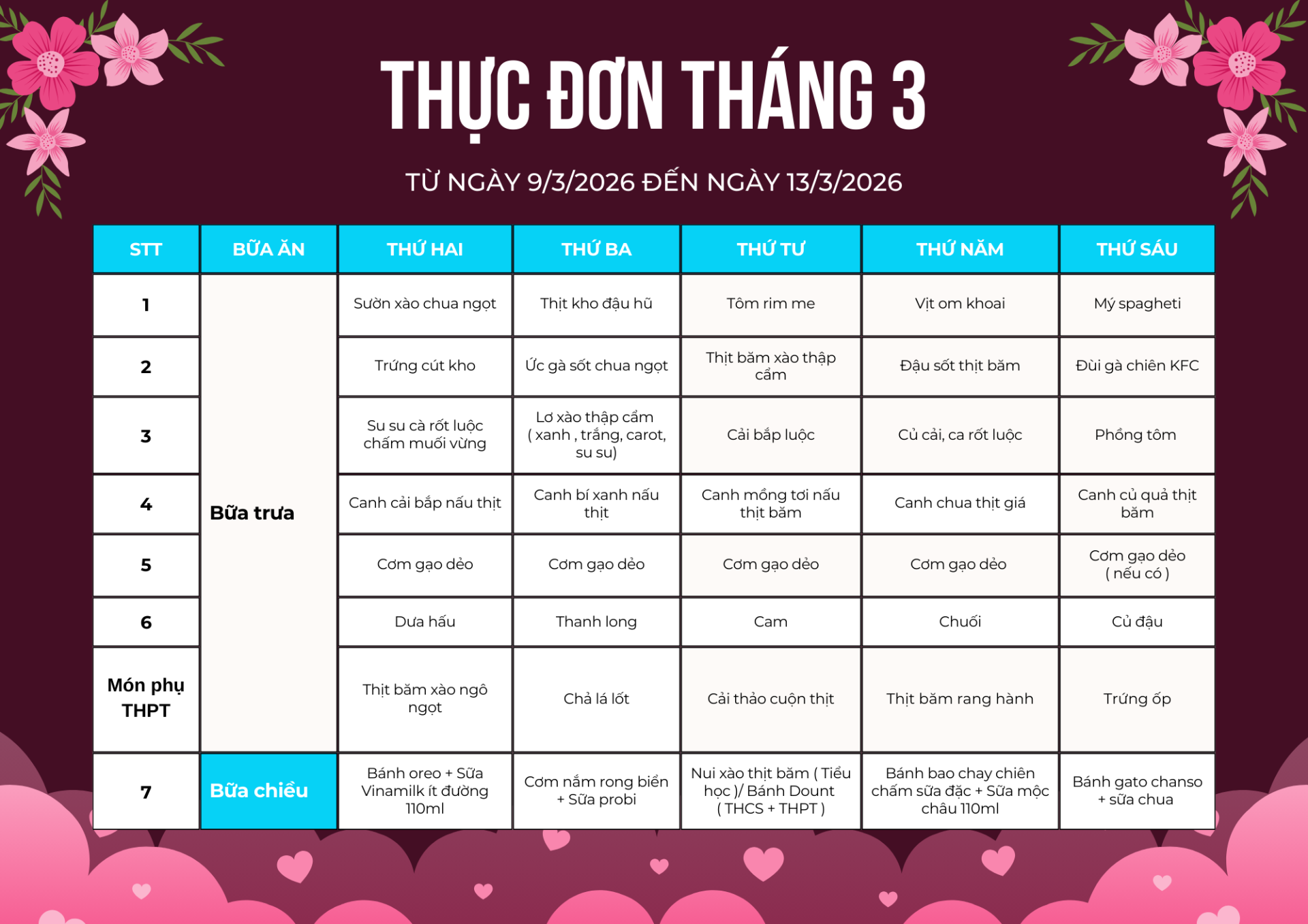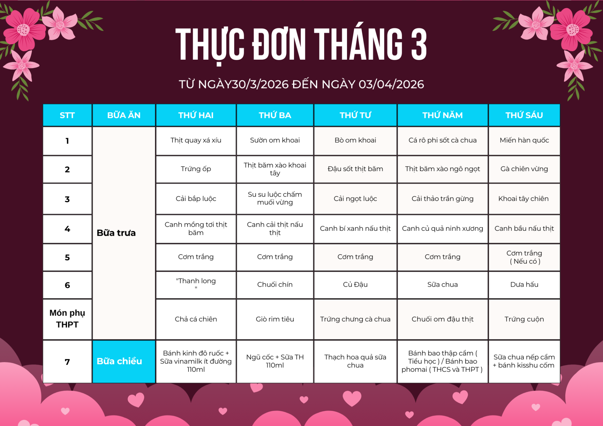Thực đơn tháng 3 tại FPT School Bắc Giang chính thức lộ diện với những đổi mới đầy hấp dẫn, sẵn sàng cùng FSTers bứt phá trong học kỳ này!